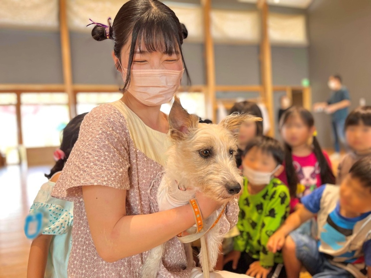 わんちゃんと接する上での大切なお話や、音と普段取り組んでいる訓練の様子、音楽に合わせたドッグダンスをさせて頂きます。